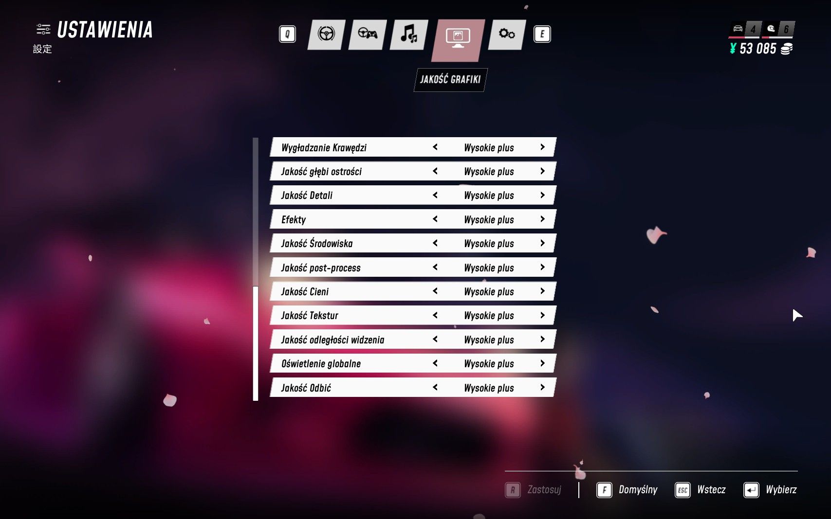 Liczba opcji graficznych pozwala na dopasowanie gry do swojego sprzętu.JDM: Japanese Drift Master, Gaming Factory, 2025.