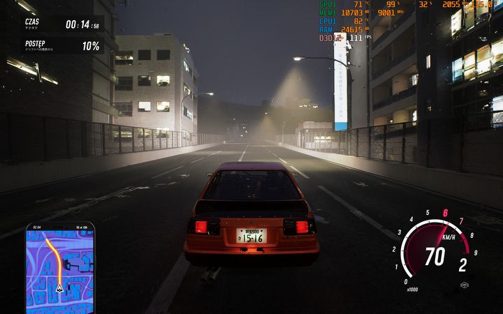 JDM: Japanese Drift Master pozytywnie zaskakuje pod względem optymalizacji i stabilności działania. Grając na maksymalnych ustawieniach graficznych (Ultra) w rozdzielczości 2560 × 1600 z włączonym DLSS w trybie „Jakość”, liczba klatek na sekundę – niezależnie od pory dnia czy lokalizacji – utrzymywała się w zakresie 85–96 kl./s. Obniżenie rozdzielczości do 1920 × 1080 skutkowało wzrostem do stabilnych 93–106 kl./s, co potwierdza bardzo dobrą optymalizację.