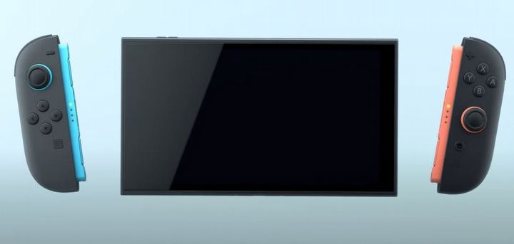To co pierwsze rzuciło się w oczy to zaokrąglenia – Nintendo odeszło od typowo „kwadratowego” designu swojej konsoli i postawiła na mniej ostre krawędziowanie. Dzięki temu Nintendo Switch 2 jest nieco mniejszy wizualnie oraz wygląda bardziej nowocześnie, co upodabnia go do obecnych na rynku handheldów. Jeśli chodzi o wejścia to łącznie będą aż 2 wejścia USB, a sam ekran ulegnie powiększeniu. W górnej części obudowy pojawiła się tajemnicza kropka – czyżby był to czujnik podczerwieni? Nie wiemy, ale podobna jest w wersji OLED, ale z tą różnicą, że jest matowa, a ta się definitywnie błyszczy.