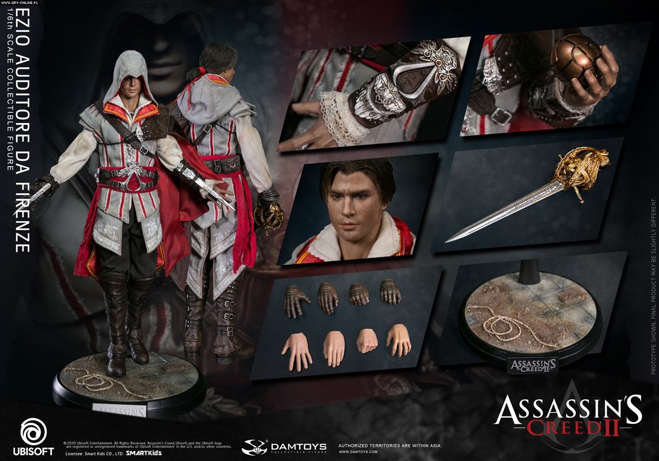 Figurka jednego z najbardziej ikonicznych członków zakonu asasynów została wyprodukowana w skali 1:6. Szczegółowa miniatura wykonana została z plastiku, wyposażono ją w liczne elementy ruchome. Do ewentualnych przyszłych klientów Ezio trafi w zestawie z czterema parami dłoni, Jabłkiem Edenu, mieczem (Schiavona), kultowymi ostrzami oraz podstawką z logo gry Assassin's Creed II. Statuetka ubrana będzie w strój wykonany z prawdziwych materiałów. W tym momencie można składać zamówienia na przedpremierową wersję figurki. Wysyłka fizycznych egzemplarzy ma nastąpić w trzecim kwartale tego roku. Jeśli jesteście zainteresowani dołączeniem figurki do swojej kolekcji, sklep BigBadToysStore oferuje wysyłkę międzynarodową.