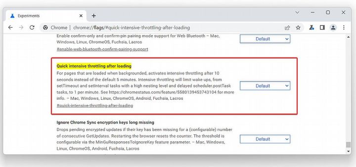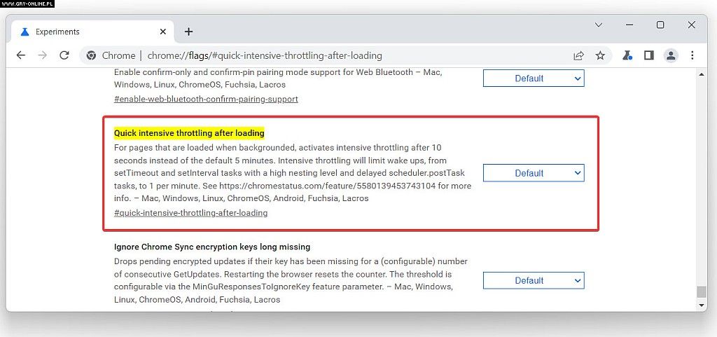 Opcja nazywa się „Quick intensive throttling after loading”. Jej aktywacja wprowadza zmiany w zachowaniu się nieaktywnych kart przeglądarki, jak wynika z opisu w serwisie Chrome Unboxed.