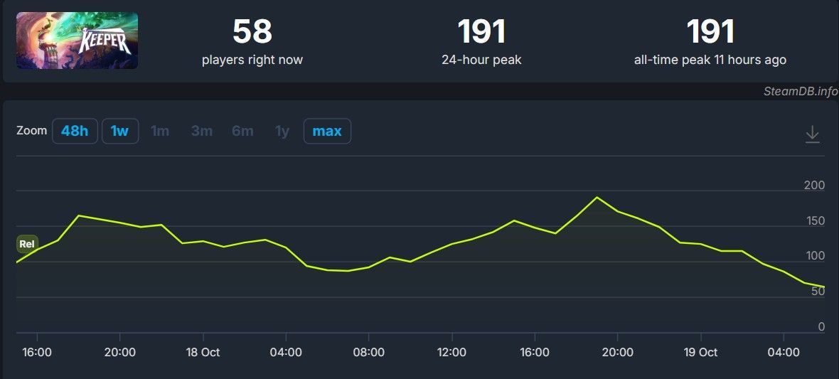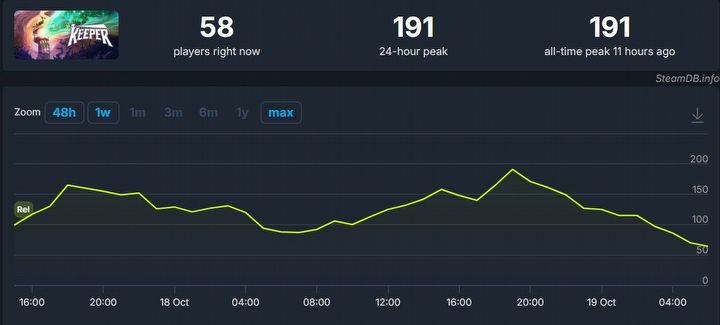 Pomimo przyzwoitych ocen Keeper nie dał rady zawojować Steama. W szczytowym momencie w grze bawiło się jedynie 191 osób jednocześnie, a w chwili pisania tego tekstu – zaledwie 58.