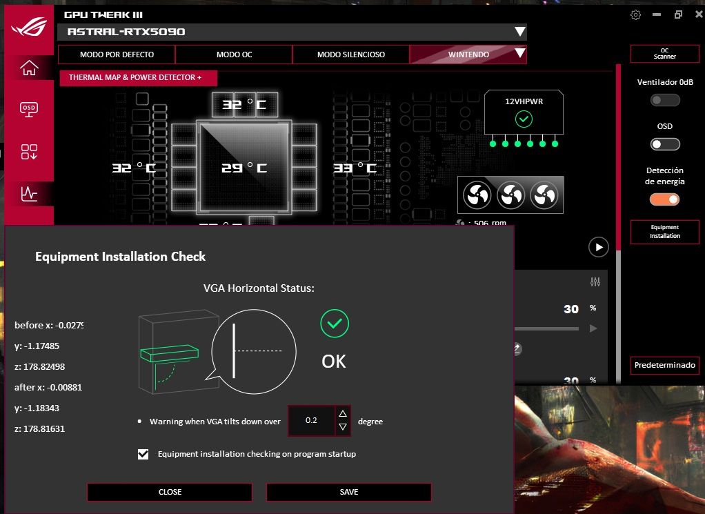 Jedną z pierwszych osób, które zauważyło zmianę, był Eduardo Andrés Labrin korzystający z karty graficznej ASUS ROG Astral RTX 5090 ważącej około 3 kilogramów. Z jego posta na Facebooku wynika, że po ostatniej aktualizacji oprogramowania GPU Tweak III, producent dodał nową funkcję „Equipment Installation Check" („Kontrola instalacji sprzętu”). Narzędzie wykorzystuje specjalny sensor (według Uniko’s Hardware najprawdopodobniej firmy Bosch) do ciągłego monitorowania kąta nachylenia karty graficznej. Gdy wykryje odchylenie większe niż domyślne 0,2 stopnia, wysyła ostrzeżenie. Dzięki temu da się z wyprzedzeniem zareagować na opadanie GPU i zastosować odpowiednie podparcie.