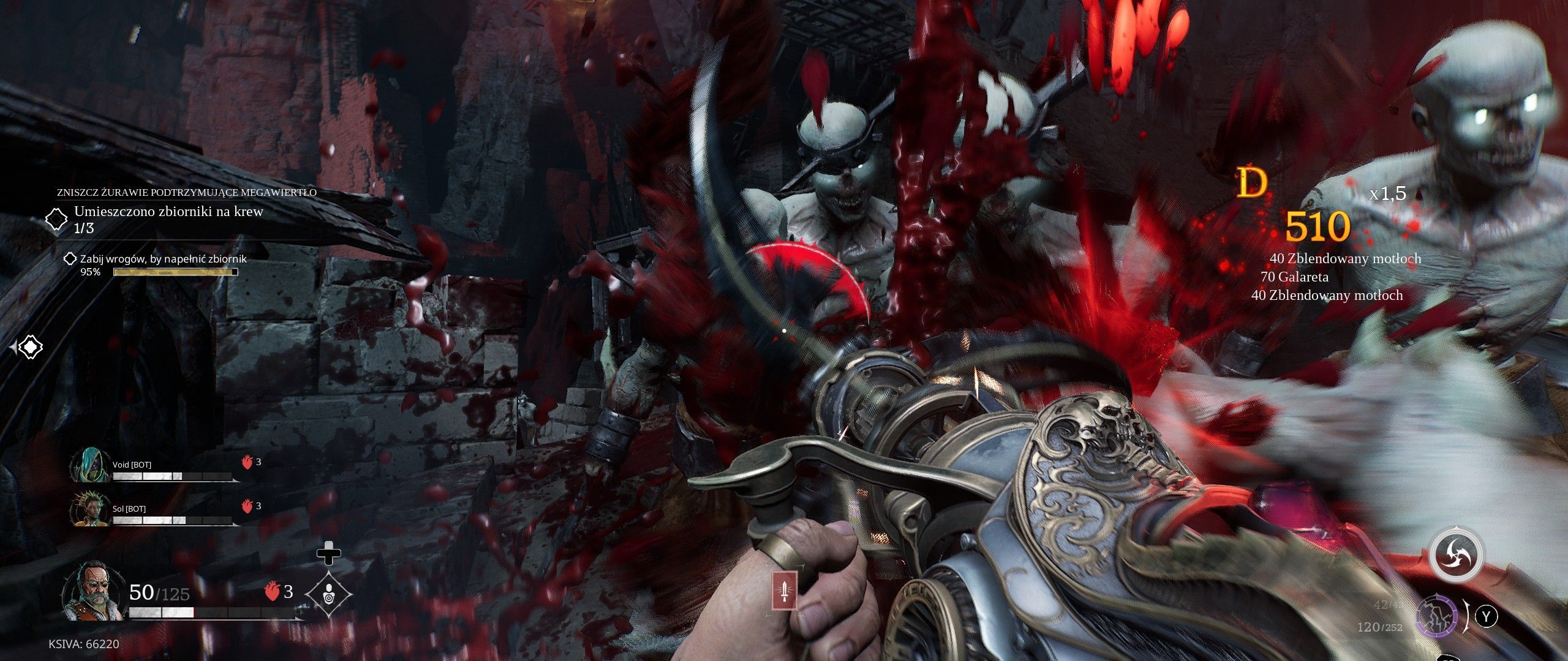 W demie w takich lokacjach były dwa rodzaje zadań: zwykłe odpieranie kolejnych fal wrogów albo nieco bardziej pomysłowe, polegające na napełnieniu beczki krwią zabijanych w jej pobliżu przeciwników. Pełny zbiornik trzeba było potem przenieść i umieścić w wyznaczonym miejscu, co powiązano jeszcze z minifabułą w danej lokacji. Mam nadzieję, że w dalszych lokacjach pojawią się podobne wyzwania, również takie wymuszające działanie w coopie. Na mapach znajdziemy ponadto trampoliny wystrzeliwujące nas w górę i czaszki zawieszone w powietrzu, które aktywują coś w rodzaju linki z hakiem. Daje to lokacjom pewną wertykalność, zachęca do eksploracji, ale nie wymusza ciągłego skakania podczas walki, jak to było w Doomie Eternal. Zależnie od wybranego poziomu trudności, zawarte misje dało się przejść od w czasie od kilkunastu minut do maks pół godziny. Pod względem długości, liczby graczy w drużynie, minifabuły i różnych mechanik urozmaicających strzelanie, misje w nowym Painkillerze mocno przypominały mi aktywność o nazwie Strike w Destiny. I nie powiem, wzbudziły ciekawość, co może się znaleźć w kolejnych etapach oraz jak będą wyglądały walki z bossami.