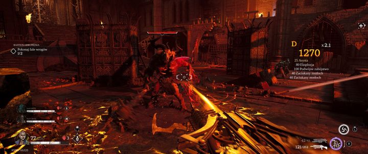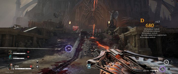 Sama rozgrywka jest naprawdę przyjemna – szybka, płynna, brutalna, bez udziwnień w stylu parkouru po tyczkach lub parowania zielonych glutów. Przynajmniej w tej porcji gry, którą miałem okazję sprawdzić. W udostępnionym demie dało się zaliczyć prolog oraz dwie mapy, na których wykonujemy coś w rodzaju rajdu, przy czym druga lokacja kończyła się w najważniejszym momencie, tuż przed walką z bossem. Lokacje są bardzo klimatyczne, podobne do tych z Dooma: The Dark Ages, łącząc stylistykę gotycką z piekielną. Każda mapa składa się z spokojniejszych fragmentów, które przechodzi się od jednej bramy do drugiej z okazjonalnym zakamarkami do zebrania złota i uzupełnienia zapasów oraz aren, gdzie trzeba się już wykazać.