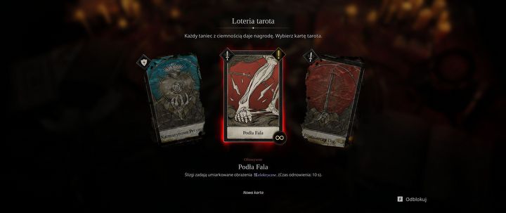Każdą bitwę w czyśćcu możemy sobie nieco ułatwić kartami tarota, które spełniają tu rolę perków. Jest ich aż 44, choć czytając opisy działania odniosłem wrażenie, że wiele z nich to zapychacze w stylu ulepszonych przedmiotów z gier MMO. Obok dość przydatnych kart z prostym opisem, jak choćby tej przywracającej nam pełnię zdrowia po reanimacji towarzysza, sporo jest też takich w stylu: „kiedy twoje zdrowie spadnie poniżej 30% to każdy pocisk zadaje o 5% większe obrażenia, ale tylko przez 5 sekund” … Jestem zdania, że w tak dynamicznej rozgrywce takie niuanse są niemal niemożliwe do odróżnienia i zdecydowanie wolałbym mniej kart, ale konkretniejszych.