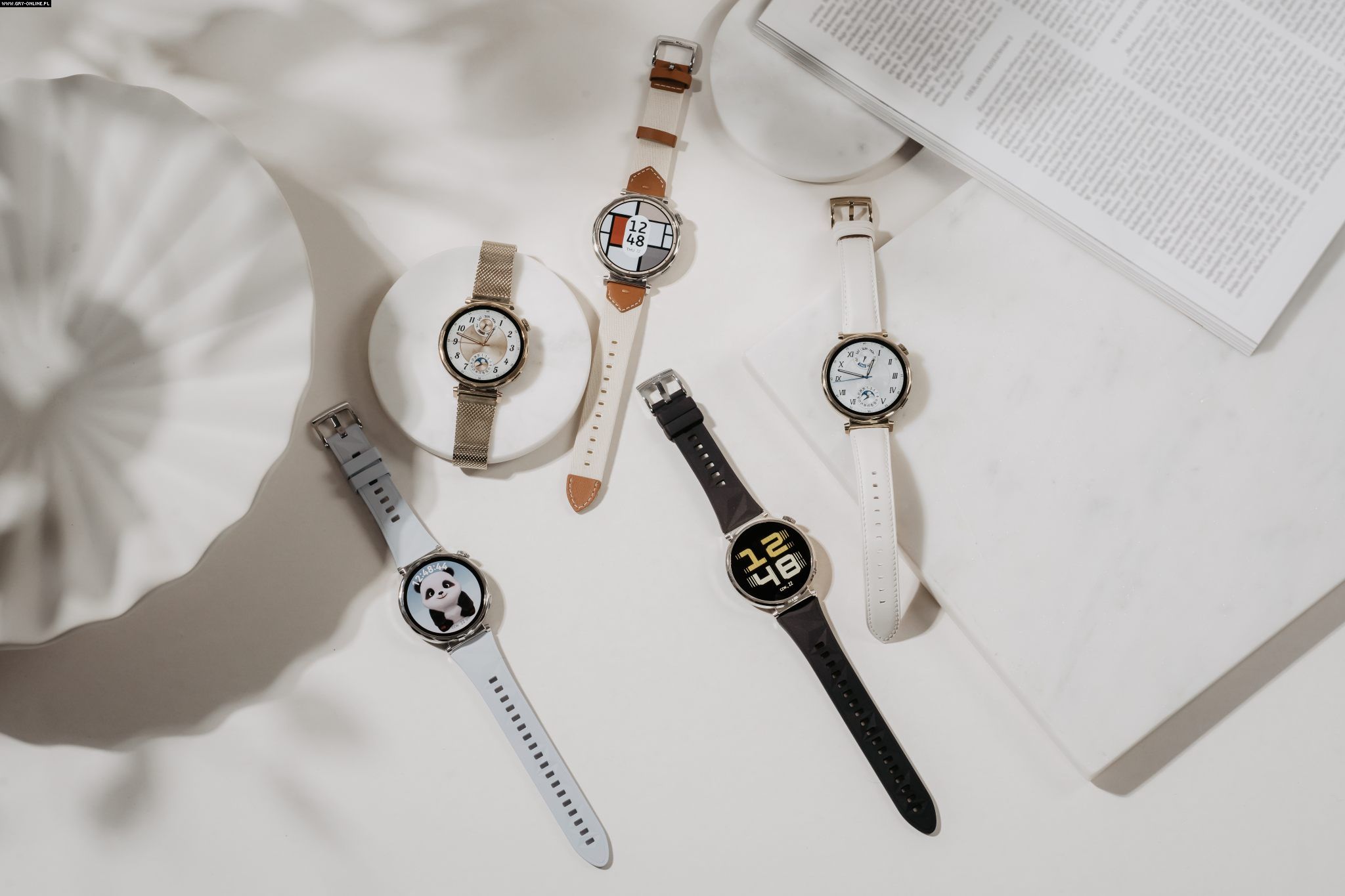 Watch GT 5 to bazowy model nowej generacji zegarków od Huawei, dostępny w sporej liczbie wariantów. Dostajemy do wyboru koperty 41 i 46 mm, a także spory wybór pasków, przez co możemy mieć typowo sportowe urządzenie, ale także bardziej „codzienny” z plecionym kompozytem czy skórą kompozytową. Świetnie na żywo prezentują się też warianty 41 mm z paskiem z fluoroelastomeru ozdobionym geometrycznymi kształtami.