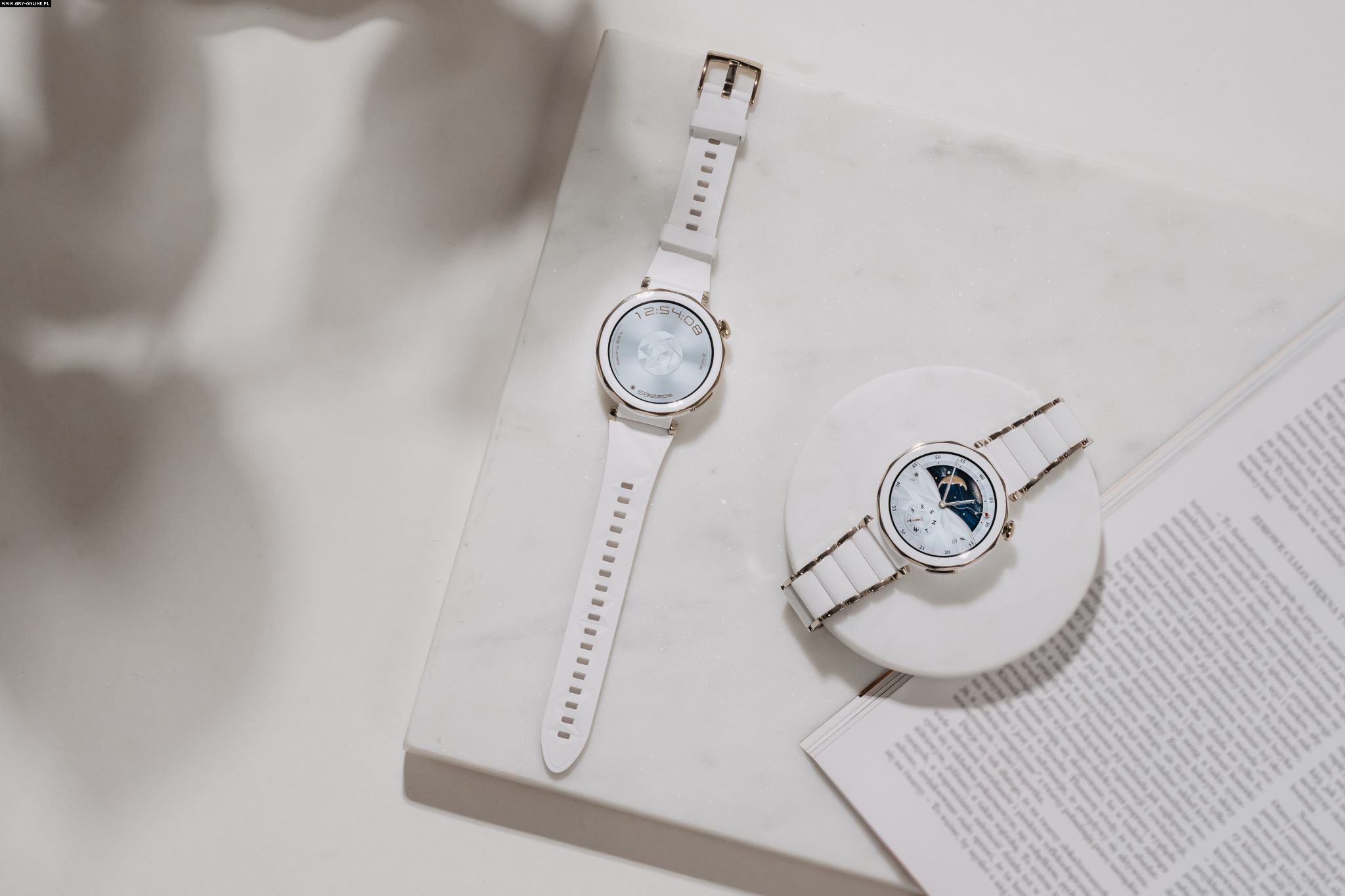 W przypadku modelu GT 5 Pro widać bardzo mocne sprofilowanie pod mężczyzn (wersja 46 mm) i kobiety (42 mm) – pierwsze stawiają na agresywniejszy wygląd i surowszą formę, podczas gdy w drugich dominuje biel i delikatne zdobienia. Najbardziej uniwersalne na pierwszy rzut oka i po przymierzeniu wszystkich wariantów wydają się mniejszy model Elegant i większy Active.