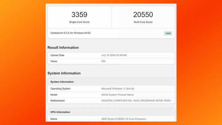 Kolejną jednostką centralną od AMD poddaną testom jest 16-rdzeniowy Ryzen 9 9950X, mogący pochwalić się taktowaniem w trybie boost wynoszącym 5,7 GHz. Dzięki temu na jednym radzniu udało mu się „wykręcić” wynik wynoszący 3359 punktów. Natomiast na wielu rdzeniach zdobył 20550, czyli o 6,6% więcej niż w przypadku Ryzena 9 7950X, , ale o 1,6% mniej w porównaniu do jednego z jego głównych konkurentów, czyli Intel Core i9 14900K.