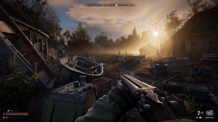 Jeśli uważnie przyjrzymy się tym pięknym ujęciom z postapokaliptycznej Zony, zauważymy, że interfejs użytkownika został trochę zmieniony. W lewym dolnym rogu widać paski życia i poziomu napromieniowana oraz kilka dodatkowych ikonek (najpewniej stan m.in. głodu i zmęczenia). Informacja o dostępnych nabojach w prawym rogu również jest nieco inna.