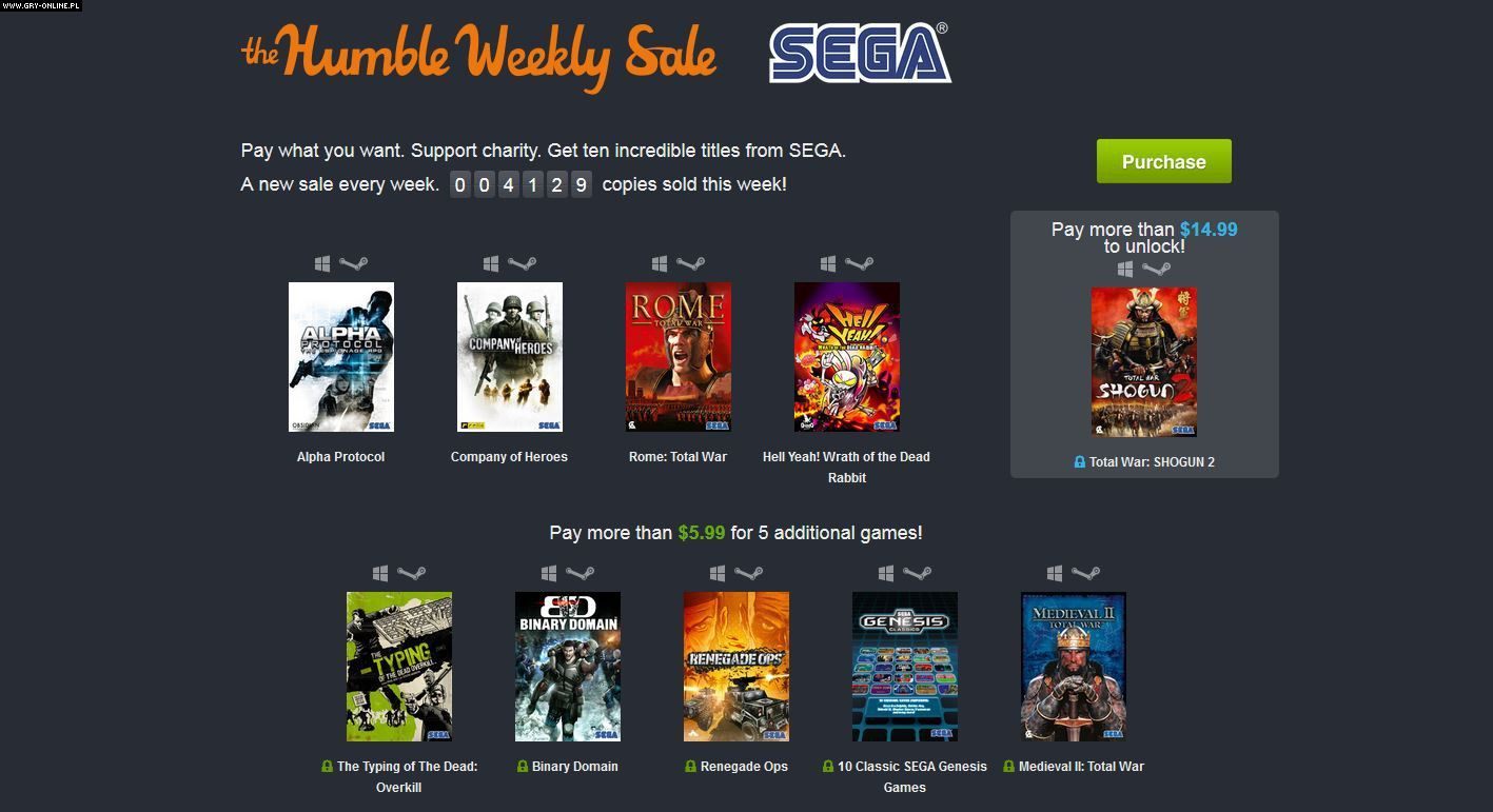 Pojawiła się kolejna oferta w ramach tygodniowej promocji The Humble Weekly Sale. W jej skład wchodzi w sumie 10 gier, których wydawcą lub producentem była firma SEGA. Wśród tytułów znajdziemy między innymi produkcje, takie jak: Alpha Protocol, Binary Domain, Medieval II: Total War czy Total War: SHOGUN 2.