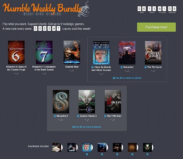 Ruszyła nowa tygodniowa promocja The Humble Weekly Sale. Tym razem można dostać dziewięć klasycznych gier w wersjach działających na współczesnych komputerach. Są wśród nich System Shock 2, Wizardry 6, 7 i 8, Shadow Man oraz cztery przygodówki (np. Harvester). Aby dostać wszystkie tytuły, trzeba zapłacić przynajmniej 9 dolarów (ok. 27 zł).
