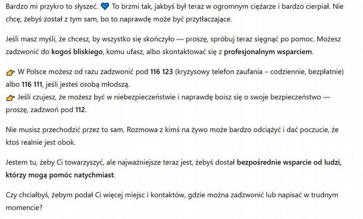 Żaden algorytm czy model językowy nie zastąpi rozmowy z drugim człowiekiem. Dlatego jeśli odczuwać zbyt silną presję, a rzeczywistość cię przytłacza – nie wstydź się prosić o pomoc. To naturalne. I to bez względu na twój wiek, status czy inne kwestie, które Cię definiują.