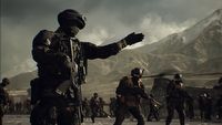 Jak widać, akcja rozpoczyna się w trakcie prezentacji egzoszkieletów LiveFrame mających zapewnić przetrwanie na polu bitwy, przed udziałowcami korporacji Tediore. W pewnym momencie prowadzący ujawnia jedną istotną rzecz dla firmy – oszczędności. Po tym ogłoszeniu zabija on pracowników, a zbyt droga zbroja zmienia się na tańszą wersję DeadFrame, która sprawia, że nawet martwa osoba może kontynuować walkę.