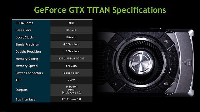 GeForce GTX Titan to jednoukładowa karta oparta na chipie GK110, wykorzystującym architekturę Kepler, znaną z wielu innych modeli. Różnica polega na tym, że układ napędzający Titana składa się z 7,1 miliarda tranzystorów. To znacznie więcej w porównaniu chociażby z modelem GK104 użytym w GTX 690 (3,5 miliarda tranzystorów). Oczywiście GeForce GTX 690 dysponuje dwoma procesorami graficznymi, ale na tym właśnie polega siła GTX Titan, który bazuje tylko na jednym układzie.