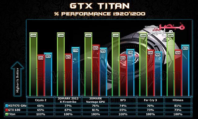 Pierwsze testy sprzętu, zebrane przez serwis PClab.pl, wskazują na to, że GTX Titan w niektórych grach jest wydajniejszy o 25% od GTX 680. Podobno karta zachowuje się też ciszej od starszego modelu. Titan radzi sobie także dobrze w trybie SLI – w niektórych przypadkach trzy karty tego typu są wydajniejsze od dwóch GTX 690 nawet dwukrotnie. Test porównawczy z innymi popularnymi modelami (GeForce GTX 680, Radeon HD 7970) pokazał też, że GTX Titan nie ma sobie równych.
