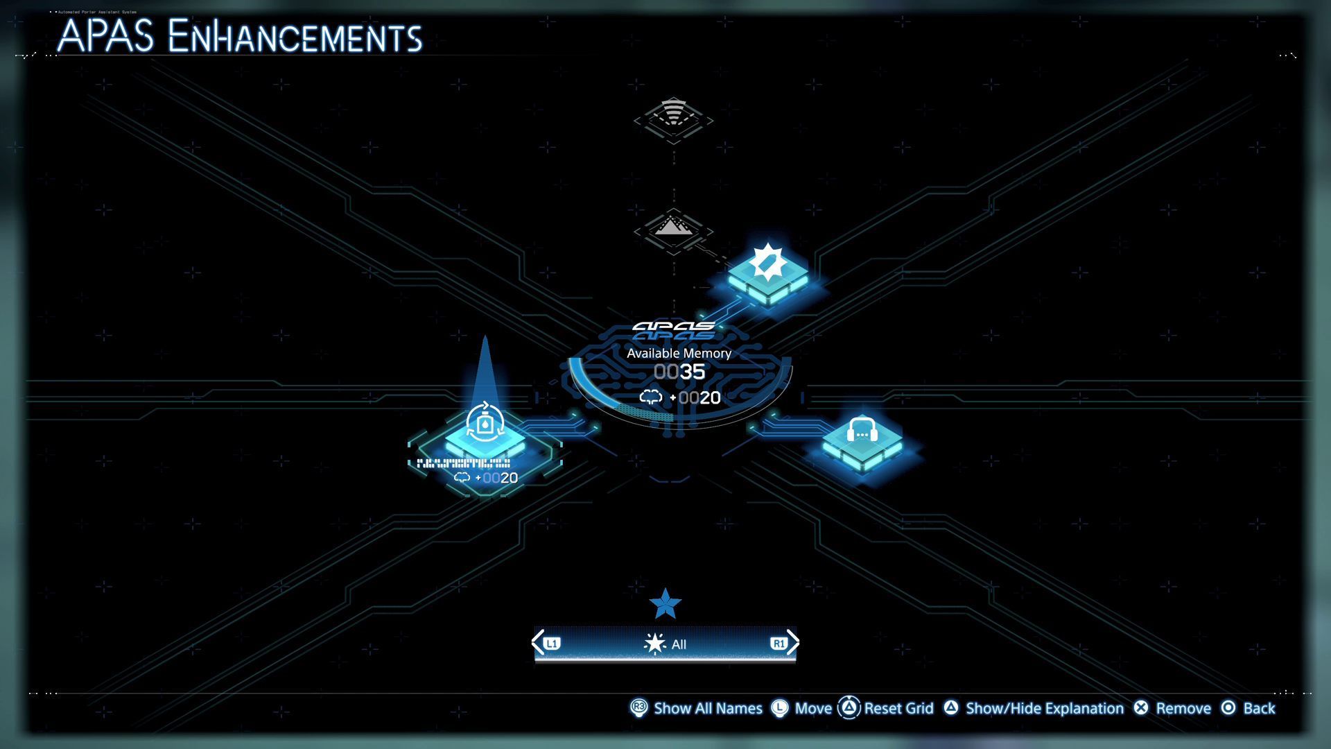 Kolejnym nowym elementem wprowadzonym w sequelu jest system ulepszeń APAS. Pozwala on na wybranie zestawu dodatkowych umiejętności z rozwijającego się z czasem drzewka. Różne gałęzie oferują wzmocnienia związane z konkretnymi aspektami rozgrywki takimi jak walka, eksploracja czy skradanie. Wraz z postępami fabuły otrzymacie dostęp do coraz szerszej biblioteki ulepszeń, które pozwolą Wam na budowanie wyspecjalizowanych buildów.