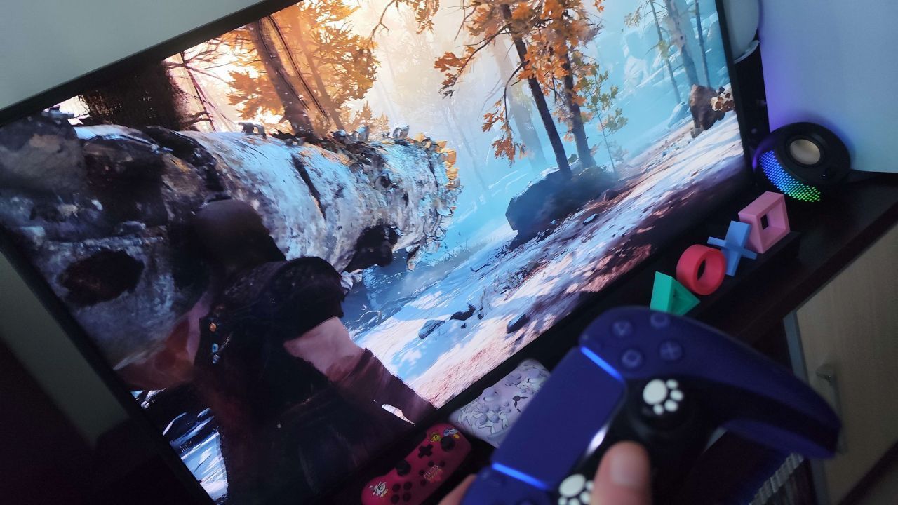 Dlatego wykorzystałem monitor AOC 27G2WG3 podłączony do komputera stacjonarnego (karta graficzna NVIDIA GeForce RTX 5060 Ti, Intel Core i5-13600KF, 32 GB RAM DDR4 (3200 MT/s)) oraz telewizor Samsung UE43RU7099 – oba wyświetlacze mają wsparcie dla trybów gamingowych, więc są to sprzęty, które wciąż dają radę w grach.