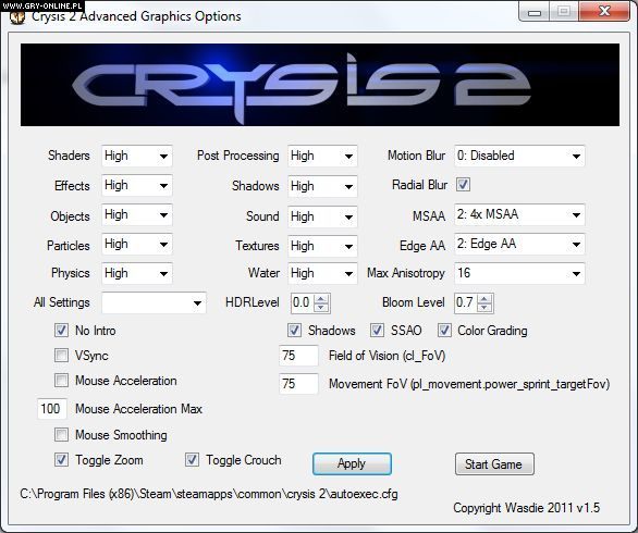 Czy najnowsze dzieło studia Crytek może być jeszcze bardziej atrakcyjne wizualnie? Zdaniem użytkowników forum incrysis.com owszem, o ile gracze zyskają dostęp do zaawansowanych ustawień grafiki. Taką możliwość daje niewielka aplikacja Crysis 2 Advanced Graphic Options stworzona przez internautę ukrywającego się pod nickiem Wasdie.