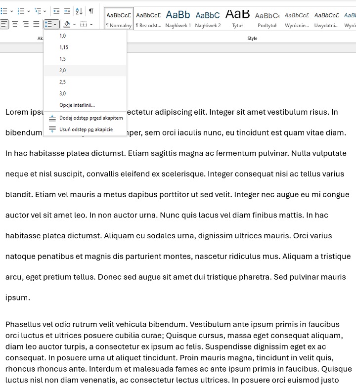 Zacznijmy od tego, że odstęp pomiędzy wierszami to tak zwana interlinia. Aby zmienić jej ustawienie, należy: