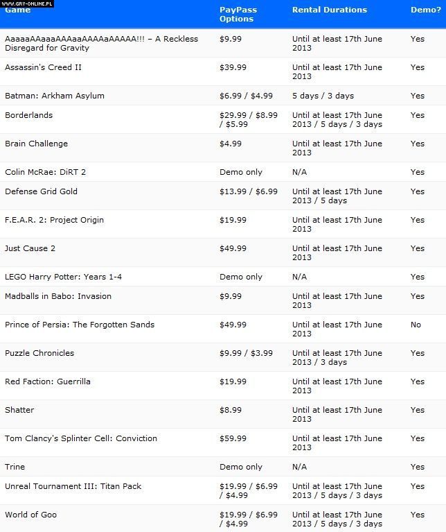 Redaktorzy serwisu Eurogamer postanowili dowiedzieć się w jakich cenach oferowane są cyfrowe wersje gier w ofercie serwisu OnLive, przeznaczonego póki co wyłącznie dla mieszkańców Stanów Zjednoczonych (w Europie w 2011 roku). Przypominamy, że za jego pomocą można testować najnowsze produkcje na każdym komputerze bez konieczności ściągania żadnych plików (technologia stream-cloud).