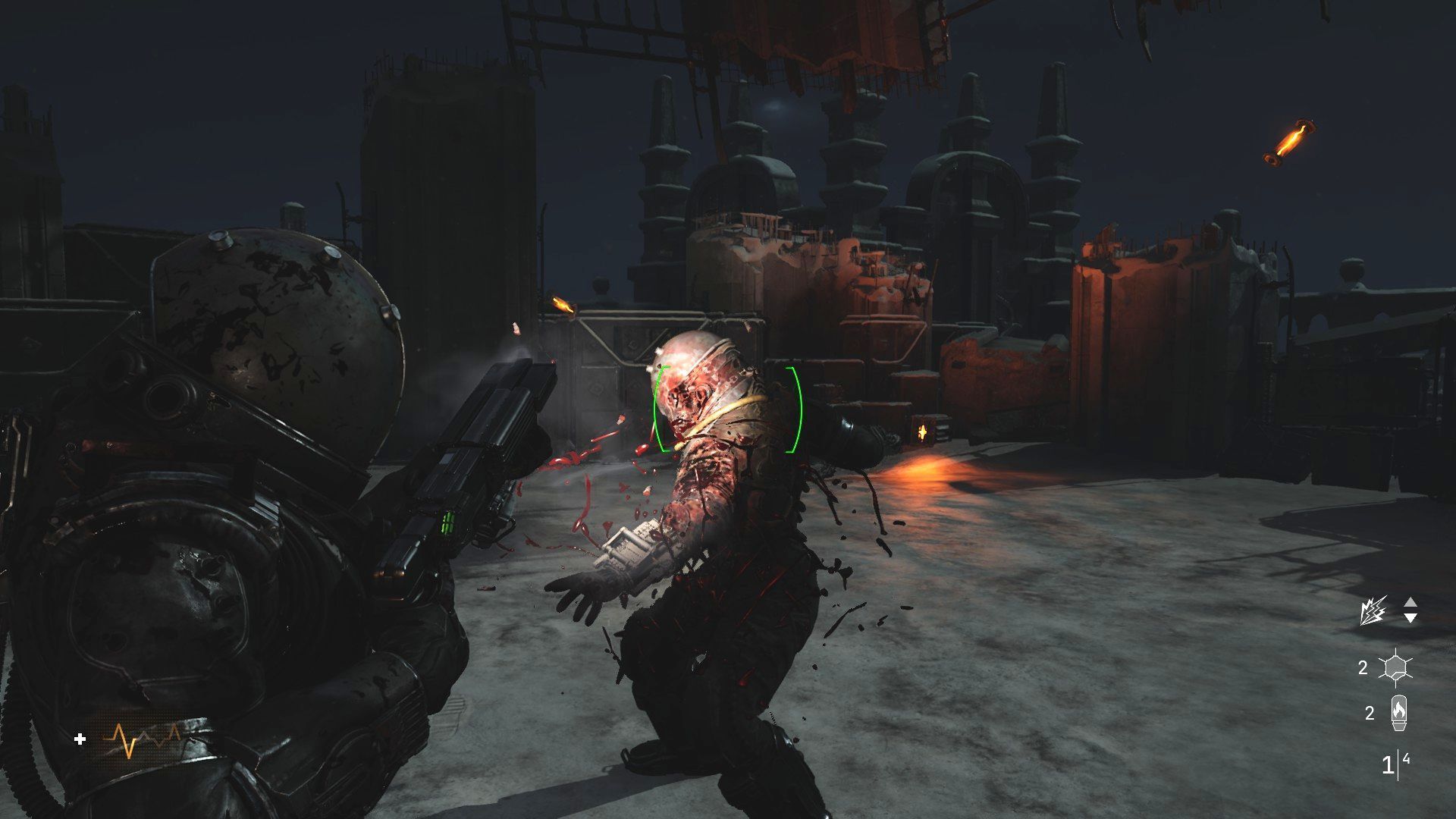Przepatrywacz będzie od teraz atakował elektrycznością miejsca, w których stoicie – odbiegajcie od nich i przy okazji ostrzeliwujcie przeciwnika. Boss częściej będzie się teleportować, dlatego jeszcze ważniejsze jest to, żeby nakłaniać go do ataków wręcz poprzez zmniejszanie dystansu. Zostawcie sobie jak najwięcej lekarstw na tę fazę, bo najłatwiej tu otrzymać obrażenia.