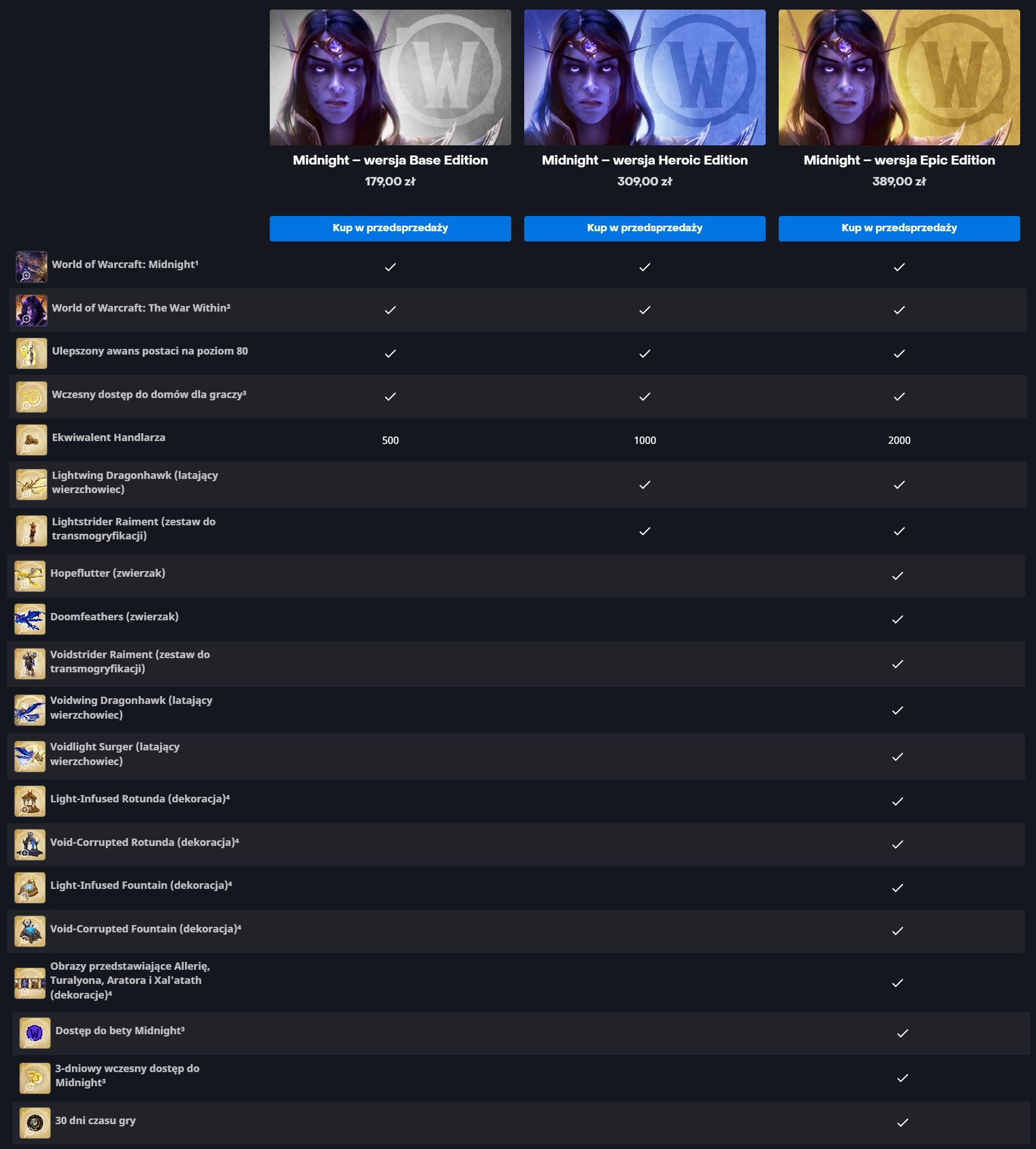 Chętne osoby mogą już zakupić rozszerzenie w przedsprzedaży. Jest ono dostępne na platformie Battle.net w trzech edycjach – podstawowej (179 zł), Heroicznej (309 zł) i Epickiej (389 zł). Poniżej możecie zapoznać się z ich zawartością.