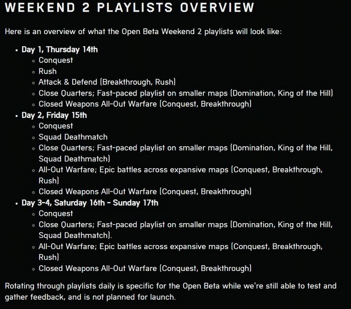 W tym tygodniu twórcy zadbali o większą różnorodność za sprawą rozszerzonej liczby playlist rotujących pomiędzy różnymi trybami gry. Dzięki temu deweloperzy będą mogli lepiej zrozumieć, co społeczność lubi najbardziej, a także pozwala to na jednoczesne utrzymanie większej liczby ulubionych trybów. Pełną rozpiskę playlist znajdziecie poniżej.