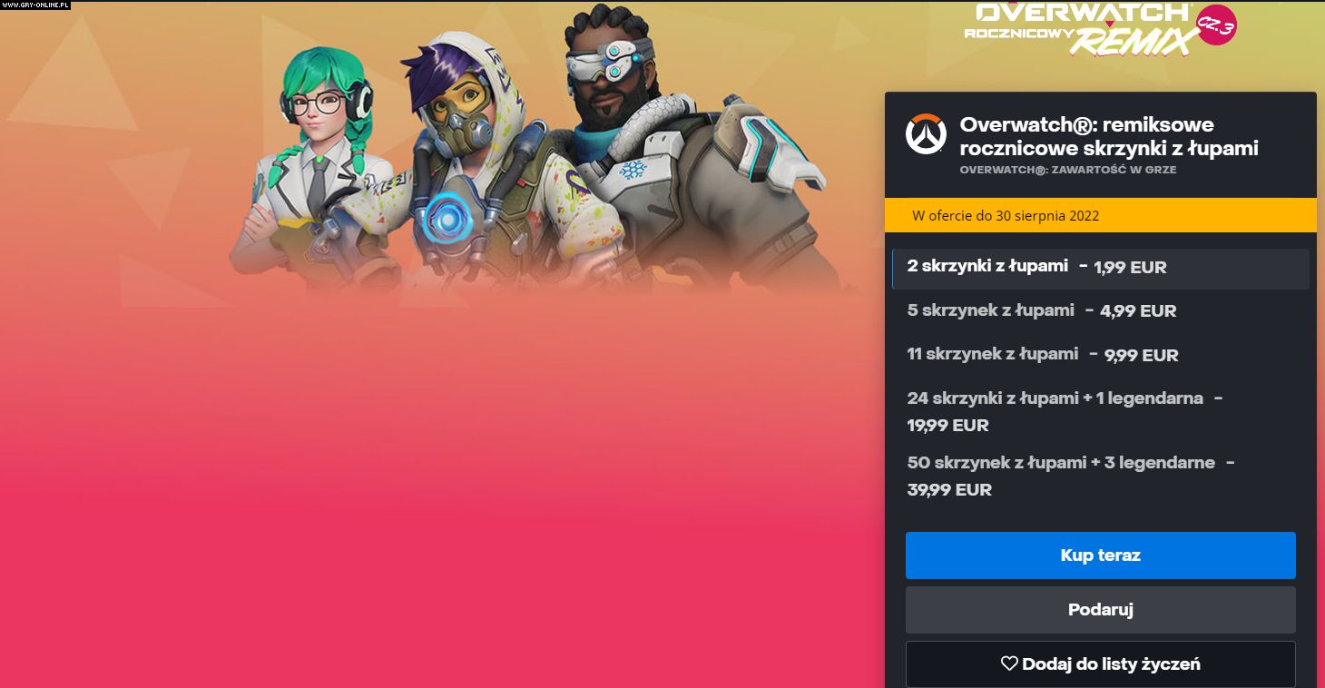 Ceny skrzynek podczas remiksowego eventu, nie będzie można ich kupić po 30 sierpniaeu.shop.battle.net
