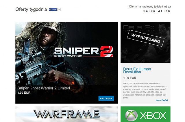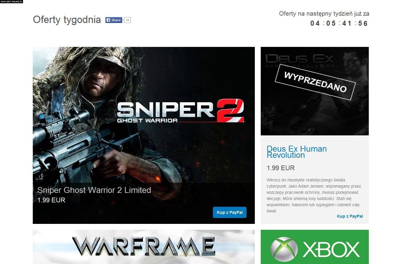 W piątym tygodniu promocji firmy PayPal honorowe miejsce u szczytu strony zajmuje polski Sniper: Ghost Warrior 2.