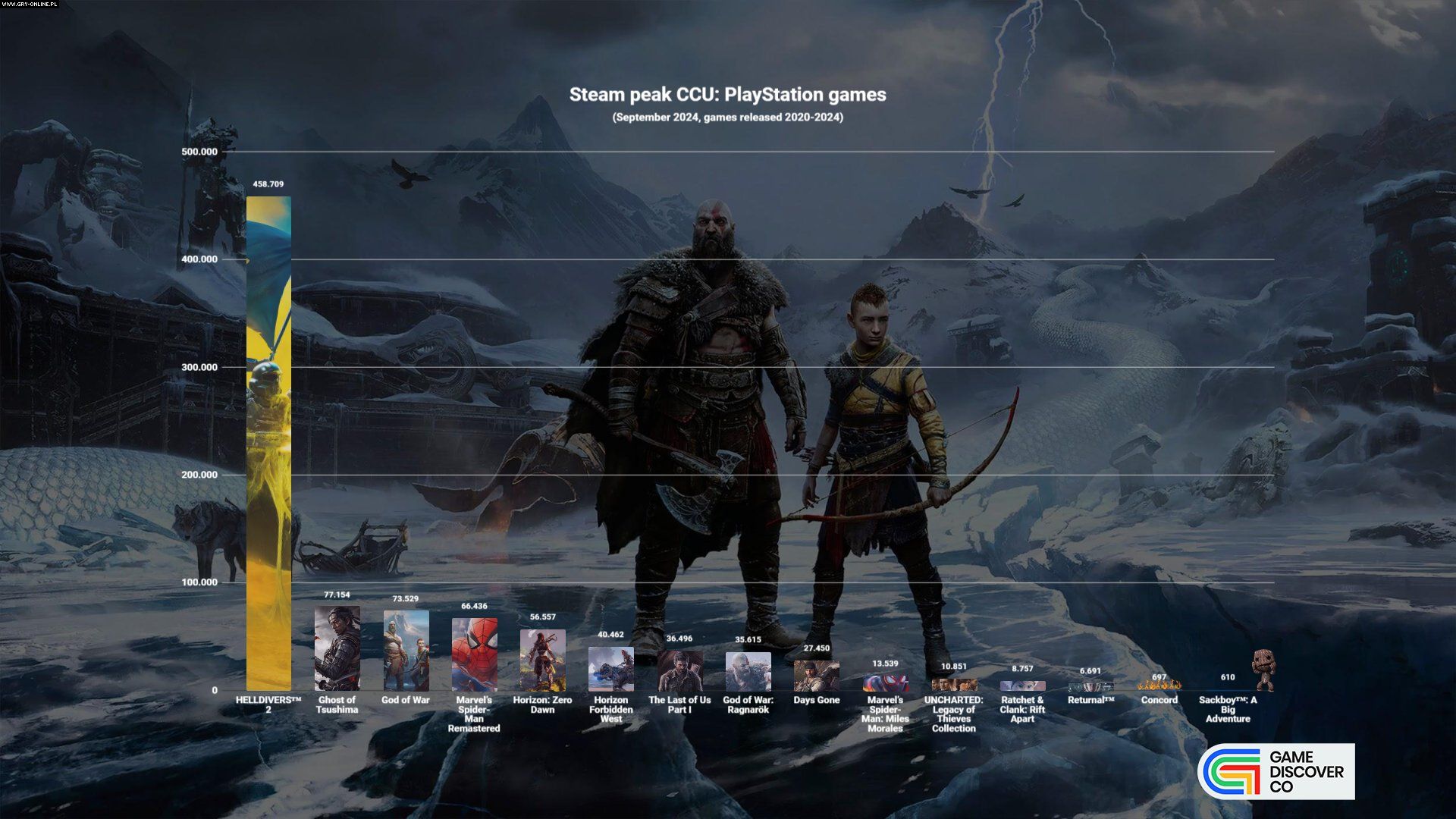 Rekordowy „peak” God of War: Ragnarok na Steamie po pierwszym weekendzie na rynku wyniósł 35 615 graczy jednocześnie. W efekcie, jak zwrócił uwagę Alejandro JJ, współautor newslettera GameDiscoverCo, to ósmy najlepszy debiut PlayStation na platformie firmy Valve (lepiej niż Days Gone, ale poniżej The Last of Us: Part 1 – jednocześnie ponad dwukrotnie gorzej od God of War).