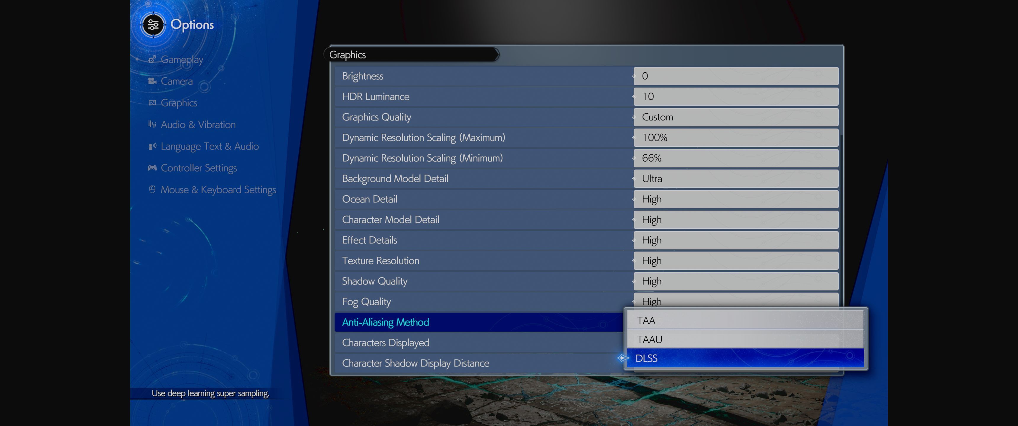 Nie rozumiem też po co tak komplikować graczom życie w kwestii DLSS. Nie dość, że to jedyna opcja upscalingu, co oznacza, że posiadacze kart graficznych AMD i Intela z niej nie skorzystają, to jeszcze jest wyjątkowo kiepsko zaimplementowana. Żeby włączyć DLSS trzeba wybrać tryb antyaliasyngu, ustawić go na DLSS i potem ręcznie wybrać minimalną procentową wartość rozdzielczości renderowania (np. 66%) z której DLSS będzie „podnosił” się do właściwej rozdzielczości. Square Enix nie opisało zatem konkretnych presetów np. jakość, zrównoważone, wydajność itp., do których przyzwyczajeni są gracze. Co więcej moim zdaniem wszystko poniżej 66% wygląda po prostu kiepsko i nieostro.
