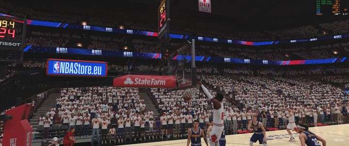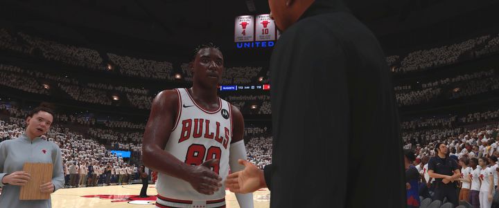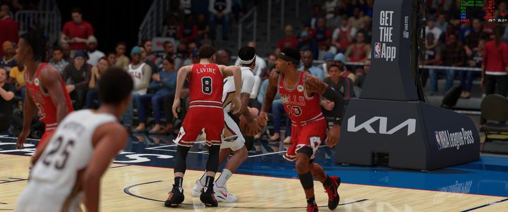 Jeśli chodzi o pecety, to w oczy rzucają się naprawdę doskonałe oświetlenie i odbicia. Te ostatnie zresztą nie bez powodu, bo wykorzystują ray tracing (szkoda, że tylko one i też nie wszystkie). W poszczególnych ujęciach momentami naprawdę przypomina to prawdziwy mecz koszykówki i mogę powiedzieć, że wśród gier sportowych ciężko o ładniejsze modele postaci. Wszyscy zawodnicy mają bardzo dobrze wymodelowane sylwetki i nawet z daleka można zobaczyć wszystkie detale na ich twarzach.