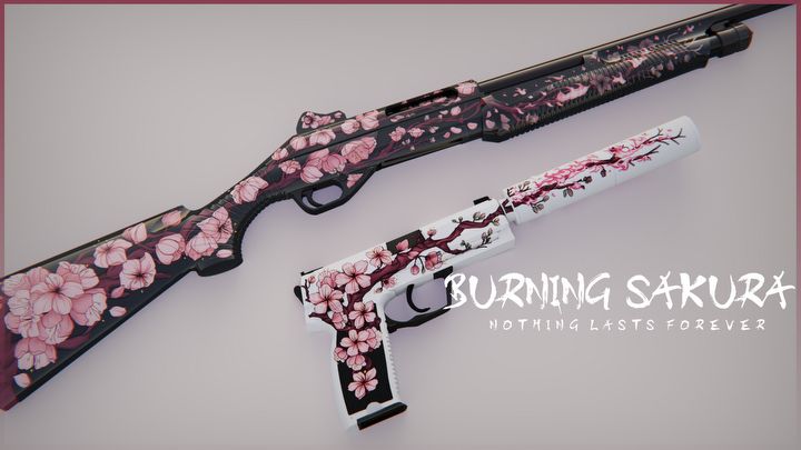 Kolekcja skórek do broni (m.in. do AWP, Glocka 18, USP-S) z motywami kwiatów ozdobnych drzew wiśniowych.
