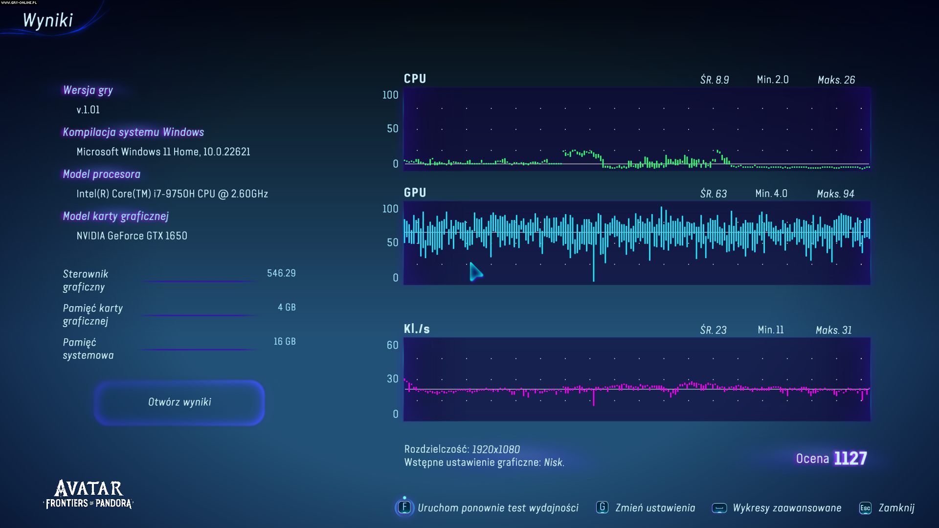 Ojej. To właściwie wszystko, co mogę powiedzieć na temat Avatar: Frontiers of Pandora uruchomionym na laptopie wyposażonym w kartę Nvidia GTX 1650. Gra uruchamia się i działa, jednak grafika wygląda nieciekawie, a wydajność jest mocno niestabilna i nietrudno o spadki klatek.