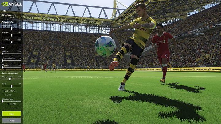 Zdjęcia z najlepszych akcji są nieodłączną częścią świata sportu, dlatego funkcje zawarte w aplikacji NVIDIA GeForce Experience, takie jak Ansel czy ShadowPlay Highlights, są wręcz stworzone dla gier sportowych. Dzięki mającej swoją premierę w tym tygodniu grze Pro Evolution Soccer 2018 fani piłki nożnej mogą wykonać coś więcej niż tylko zwykły zrzut ekranu. Mogą zatrzymać rozgrywkę w dowolnym momencie, umieścić wirtualny aparat w samym środku akcji, wykonać zdjęcie z dowolnego kąta, dodać filtry i natychmiast udostępnić swoje dzieło w serwisach społecznościowych.