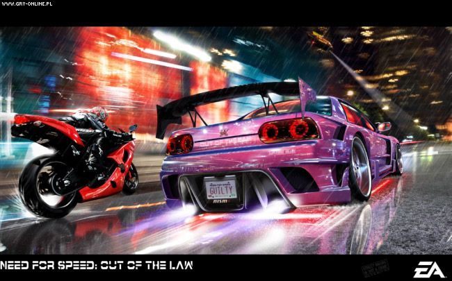 A co wiemy o Out of the Law? Podobno szef EA, John Riccitiello zapowiedział, że w ta odsłona serii nie będzie się koncentrować na drogich i egzotycznych super-samochodach, a na „zwykłych” Nissanach Skyline’ach czy Mazdach MX-5. Mało tego – po raz pierwszy w historii NFS pojawić się mają motocykle (jakieś nawiązania do podobnego zabiegu w przypadku Burnout Paradise?), a jako dodatek – także samochody typu SUV. Zdradzono jeszcze, że gracze będą mogli wpisać dowolny tekst na tablicę rejestracyjną wozu, a wszystko będzie się działo w fikcyjnym mieście Sun-Bay opartym na San Francisco. Oczywiście ma powrócić policja, która najprawdopodobniej również będzie wyposażona w motocykle.