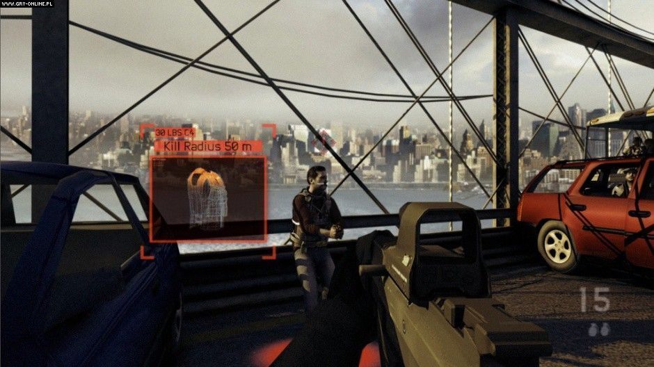 Ujawnione screeny przedstawiają m.in. system ikon pokazujących aktualnie namierzany element. Na jednym ze zdjęć jest to wspomniana kamizelka, a przejrzysty interfejs pokazuje, jak duży zasięg będzie miała eksplozja podczepionych ładunków C4. Pozwoli nam to ocenić rozmiar ewentualnych strat. Alternatywą w tej misji będzie zepchnięcie przestępcy z mostu prosto do wody.