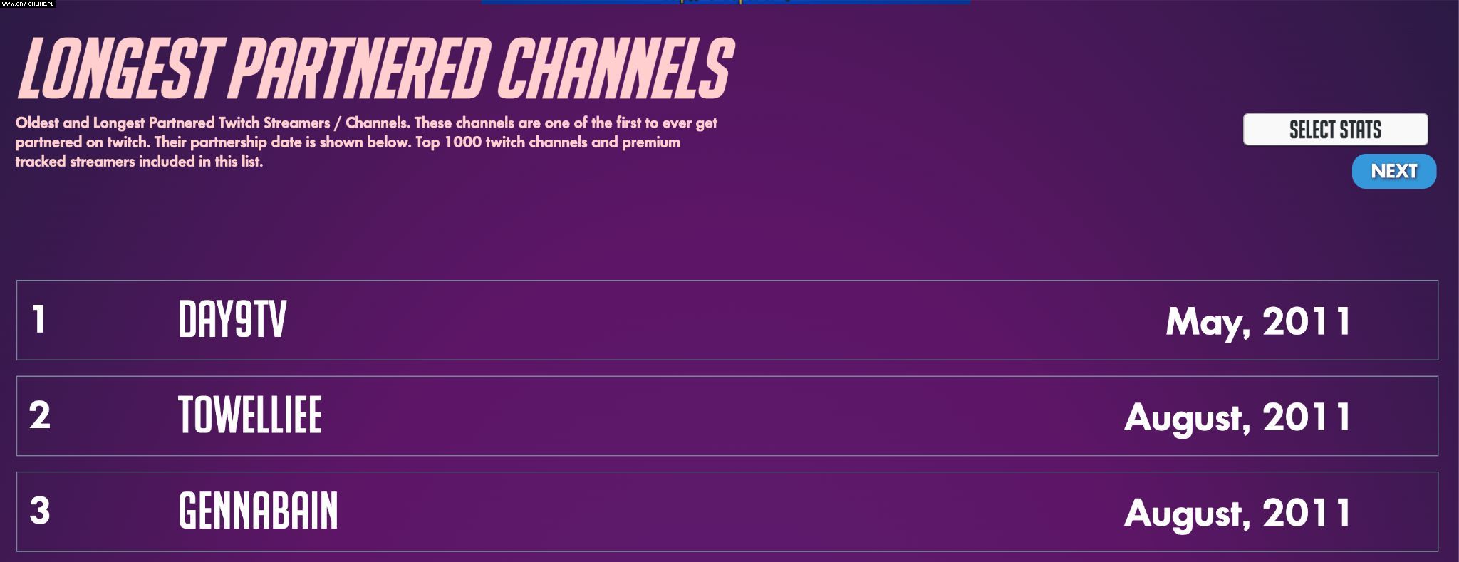 Sean Day[9] Plott wciąż prowadzi transmisje na żywo na Twitchu, co według TwitchStats czyni go najdłużej działającym partnerem platformy: