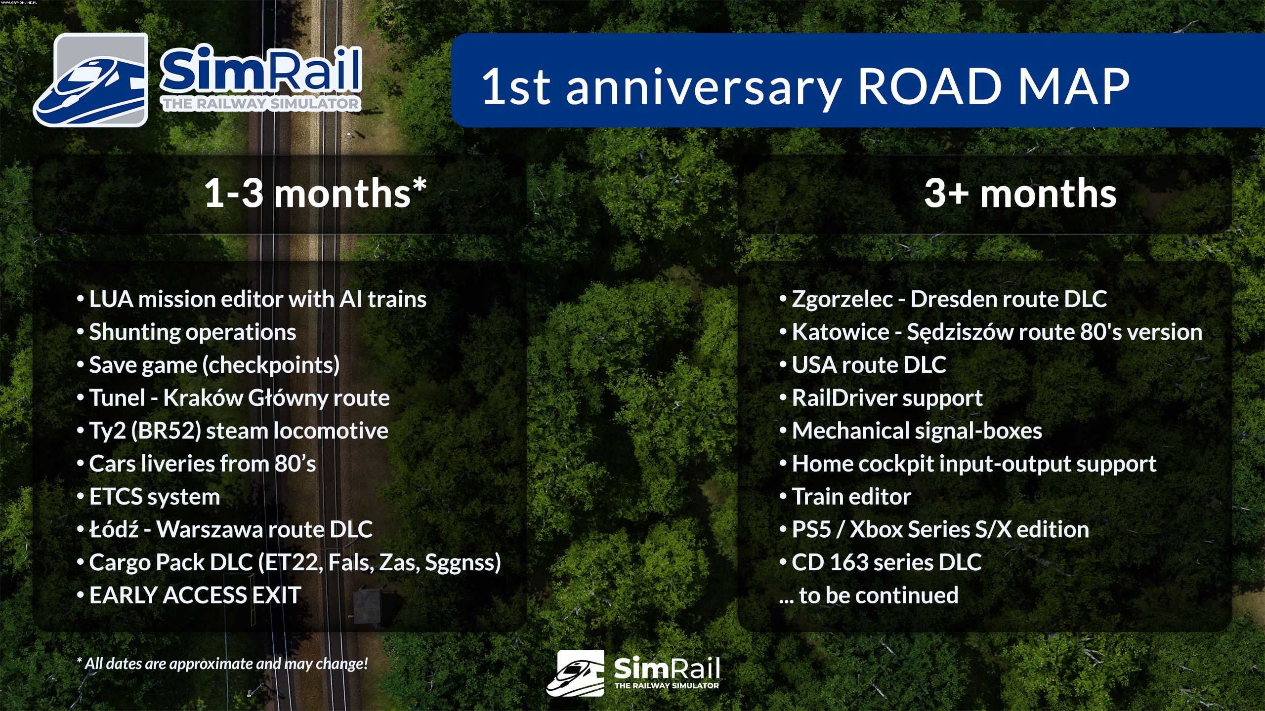 Tak zwaną „mapę drogową” udostępniono z okazji rocznicy premiery polskiej produkcji we wczesnym dostępie. Wiemy, że w ciągu najbliższych trzech miesięcy do SimRail trafią: