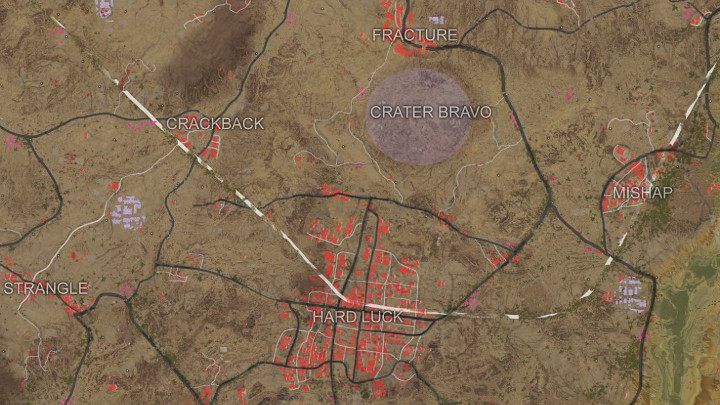 Trzeba przyznać, że przetłumaczone z hiszpańskiego nazwy własne są nieco komiczne, ale najprawdopodobniej zostaną jeszcze zmienione. Poza nimi zauważyć można jednak wiele intrygujących szczegółów. Po pierwsze, nie znajdziemy tu ani jednego zbiornika wodnego. Pasuje to do motywu pustynnego i ucieszyć może osoby, które nie lubią tzw. „wodnych camperów”, czających się pod niwelującą wszelkie strzały powierzchnią rzek i jezior. Po drugie, miasto prezentowane wcześniej na zrzutach ekranu jest przeogromne. Jakiś czas temu w wywiadzie udzielonym dla serwisu Eurogamer PlayerUnknown wyjawił, że wielkość pustynnej mapy dorówna obecnej w grze wyspie Erangel, a więc do zwiedzania gracze dostaną 8 km kwadratowych. Jeśli przyjrzeć się więc południowej aglomeracji oznaczonej etykietą Hard Luck, stwierdzić można, że jest ona cztery lub pięć razy większa od obecnego w grze centralnego miasteczka Pochinki i najprawdopodobniej będzie najrozleglejszym i najgęściej zabudowanym terenem miejskim w całej produkcji. Bez kartograficznej podziałki ciężko jest jednak o skalę absolutną.