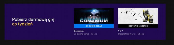 Powyższa wymiana wpisów wyraźnie sugeruje powrót Batmana w nowej grze. Jednak jaki ma to związek z Epic Games? Jeśli śledzicie oferty na darmowe produkcje na platformie firmy, zapewne zwróciliście uwagę na ostatnią zmianę. Otóż tym razem spółka nie podała, jaki tytuł otrzymamy w kolejnym tygodniu (czyli od jutra). Jednak dołączona grafika nie pozostawia złudzeń, że chodzi o produkcję z Batmanem w roli głównej.