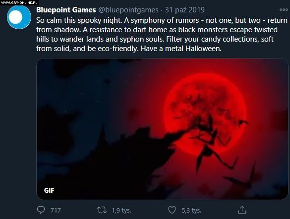 Zrozumiemy, jeżeli nie zdecydujecie się zaufać doniesieniom internetowego insidera, ale warto zaznaczyć, że jego teza pokrywa się z serią easter eggów, jakie ostatnio wypłynęły ze strony Bluepoint Games. Jeden z nich znajdziecie właśnie w Demon’s Souls i objawia się on w pewnym urywku dźwięku, który został przez fanów porównany do odgłosu Metal Gear Rexa z MGS (via Game Rant). Kolejne puszczenie oczka do internautów łatwo zauważyć w październikowym tweecie studia sprzed roku - w jego treści deweloperzy życzą nam „metalowego Halloween”. Taki dobór słów raczej nie jest przypadkowy, ale póki nic nie zostało potwierdzone, my także nie możemy być niczego pewni. Na razie czekamy niecierpliwie na więcej wieści, chociażby o platformach, na jakich potencjalnie pojawi się gra.