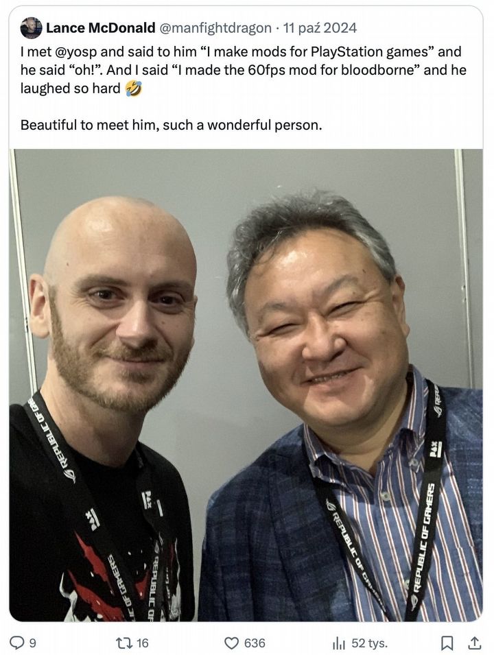 Trzeb zaznaczyć, że modyfikacja cieszyła się w ostatnim czasie rosnącą popularnością za sprawą szczegółowego materiału Digital Foundry na jej temat. Co ciekawe, sam były prezes Sony Interactive Entertainment, Shuhei Yoshida, był świadomy istnienia tego moda i podchodził do niego z dystansem. McDonald tymi słowami wspominał spotkanie z Yoshidą w październiku 2024 roku: