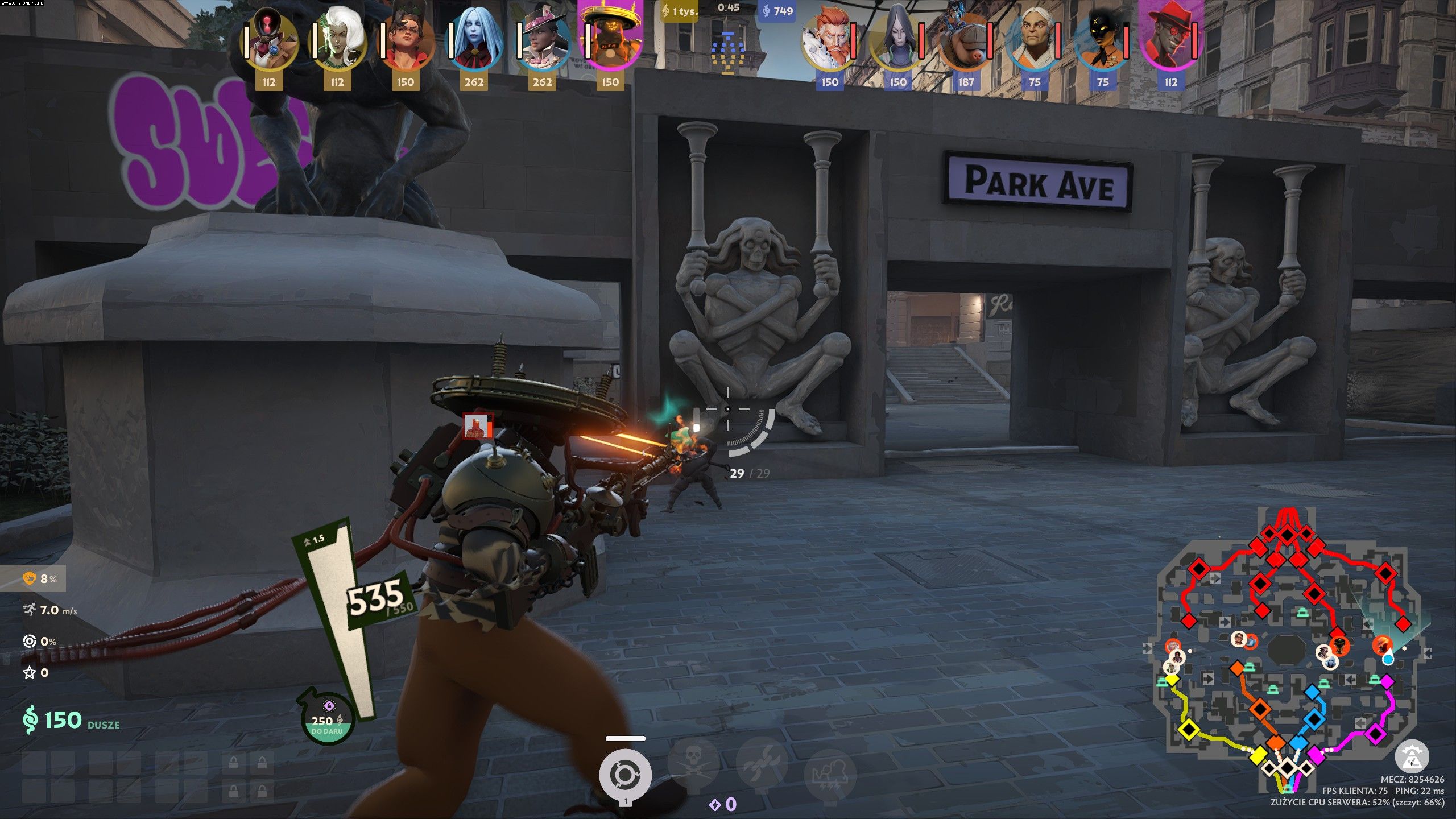 Prawdziwa rozgrywka w Deadlocku opiera się właśnie na elementach MOB-y. W meczu bierze udział dwanaście osób, a mapa podzielona została na cztery alejki. Na razie nie ma jeszcze określonych ról postaci, chociaż już widać pewne archetypy. Całość uzupełnia kupowanie przedmiotów niczym w Paladins, dżungla (w tym przypadku taka miejska), a także absolutnie kluczowa rzecz – zabieranie dusz przeciwnikowi.