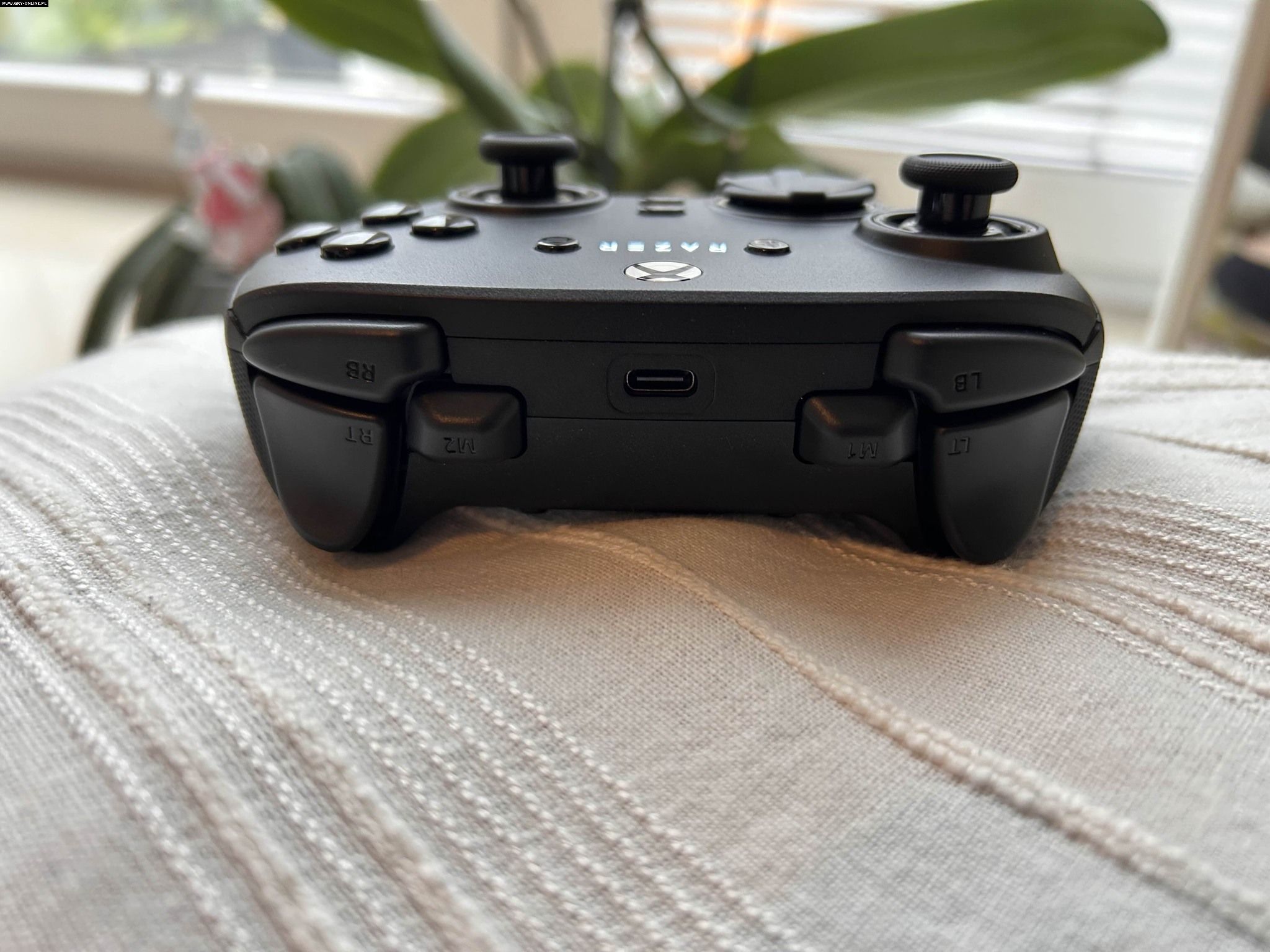 Wolverine V3 Pro to rzecz jasna pad bezprzewodowy – mówię „rzecz jasna”, bo dzisiaj praktycznie nie wydaje się już innych kontrolerów. Jasne, możecie podłączyć go kablem USB-C do peceta, ale w przypadku Wolverine V3 Pro będzie to naprawdę szukanie dziury w całym, bowiem łączność bezprzewodowa stoi tu moim zdaniem na równi z kablem. Dlaczego tak jest? Bo dołączony do zestawu adapter 2,4 GHz Razer HyperSpeed Wireless działa bardzo dobrze. Podłączyłem go w dość kiepskim miejscu, bo z tyłu komputera, wśród innych „dongli” od klawiatury, myszy czy modułu Bluetooth, a i tak nie miałem nigdy problemu z tym, żeby występowały jakieś opóźnienia czy problemy z komunikacją. Nie ma tu w ogóle porównania do łączenia padów przez Bluetooth, różnica między 2,4 GHz, a Bluetooth, to niebo a ziemia w kwestii opóźnień na korzyść tego pierwszego.