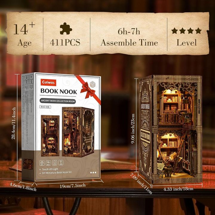 Jednym z najpiękniejszych zestawów, na jakie ostatnio trafiłem, jest Book Nook przedstawiający miniaturową biblioteczkę – prawdziwa gratka dla miłośników książek i klimatycznych wnętrz. Ten bestseller Amazona zachwyca nie tylko wyglądem, ale i dbałością o szczegóły. Całość składa się z 411 elementów, które po złożeniu tworzą zachwycającą scenę o wymiarach 23 cm wysokości, 18 cm szerokości i 11 cm głębokości.