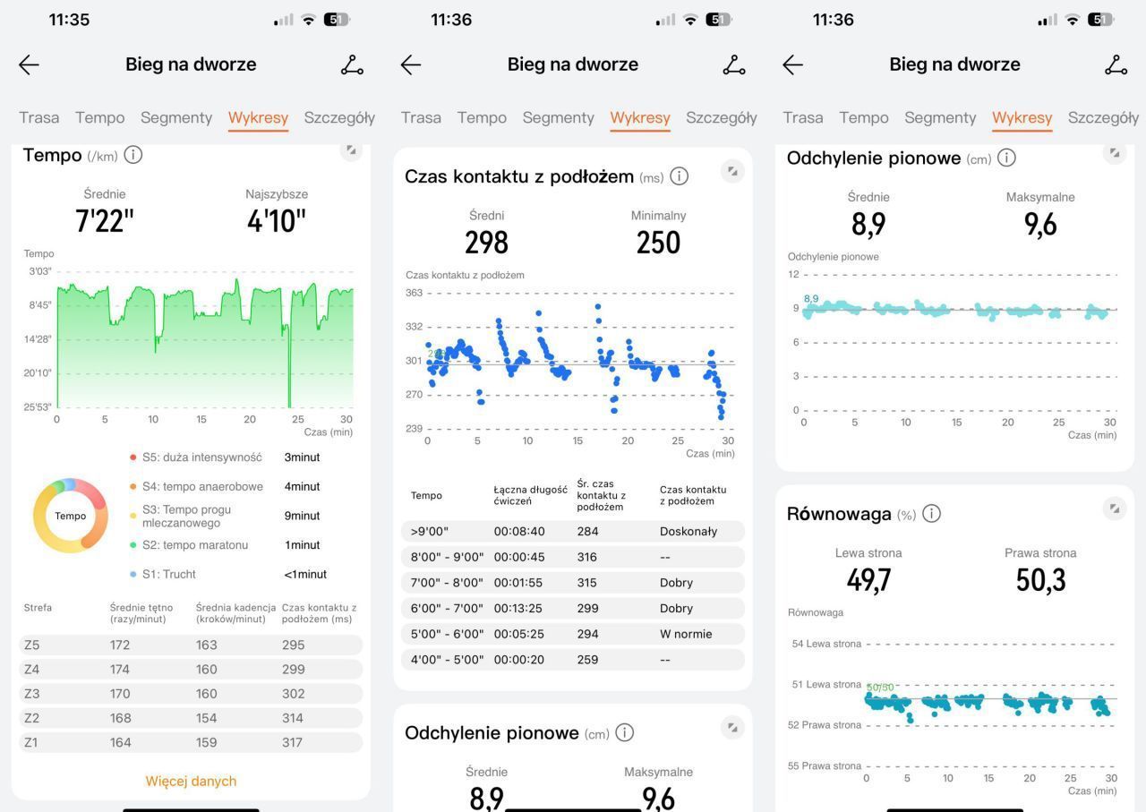 Pierwszy przełom nastąpił, gdy zegarek pokazał mi korelację między moim tętnem a odczuwalnym zmęczeniem. Wcześniej nie rozumiałam, dlaczego czasem już po 10-15 minutach biegu nagle czułam się wyczerpana, mimo że tempo pozostawało stałe, a ciało było w stanie biec dalej. Dane z HUAWEI WATCH 5 uświadomiły mi, że właśnie wtedy moje tętno gwałtownie wzrastało, przekraczając optymalną strefę treningową, czego powodem prawdopodobnie był brak wydolności tlenowej.
