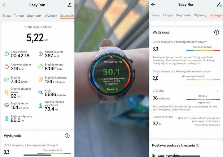 Z pewnością zmieniło to moje podejście do planowania treningów. Wcześniej zupełnie nieświadomie łączyłam w jednym dniu intensywną wspinaczkę z równie intensywnym (jak dla mnie) treningiem biegowym. Dane z HUAWEI WATCH 5 uświadomiły mnie jednak, że mój organizm dostaję w kość już za pierwszym razem, a powtórzenie tego jeszcze tego samego dnia znacząco wydłużało czas regeneracji, co w dłuższej perspektywie znacznie spowalnia progres w obydwóch dyscyplinach.