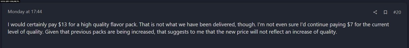 Na koniec warto też wspomnieć, że wielu fanów najbardziej oburzyła retroaktywność zmiany cen. Część osób zaakceptowała, że DLC, które zostaną wydane w przyszłości będą droższe. Nie rozumieją jednak, dlaczego podwyżka obejmie też stare dodatki, które przecież nie wiążą się z rzekomą większą zawartością.